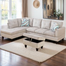 Beige Color Glossy Polyfiber Tufted Cushion Couch Sectional Sofa Chaise Living Room Furniture Reversible Sectionals Chaise