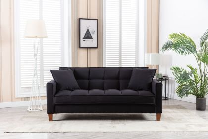 Furniture Sofa Bed with 2 Pillows for Living Room (Color: Black)