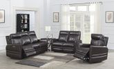 DimensionsCarton Dimensions L 81.5 x W 34.5 x H 30Features-Constructed of top-grain leather on all seating areas and polyurethane sides and backs-Power articulating headrest and power footrest with USB port and home button to return seat and headrest to original position-High-resiliency foam seating-Contemporary stylingProduct DescriptionPrepare to be swept off your feet by the Coachella Recliner Sofa in luxurious brown leather. A true embodiment of refined elegance, this sofa redefines motion upholstery with its fashion-forward contemporary design. Every aspect of this collection is meticulously crafted to offer you unparalleled comfort and style.Featuring top-grain leather on all seating surfaces, the Coachella Recliner Sofa exudes a sense of opulence that elevates your living space to new heights of sophistication. Sink into the plush cushions and experience the blissful relaxation that only high-quality leather can provide.With the power leg rest and power articulating headrest, you have complete control over your seating position, ensuring personalized comfort at the touch of a button. Whether you're curling up with a book or settling in to watch your favorite movie, the Coachella Recliner Sofa embraces you with its sumptuous support.Designed with an eye for detail, the vertical channel-back and upholstered beveled leg rest add a touch of flair to the sofa's contemporary silhouette. Not only do they enhance the overall aesthetic, but they also provide additional support, perfect for those cozy evenings spent enjoying the excitement of a big game or losing yourself in a captivating film.The Coachella Recliner Sofa is more than just a piece of furniture; it's an invitation to indulge in unparalleled luxury. Immerse yourself in its embrace and let its stylish allure transport you to a realm of unrivaled comfort and sophistication. Create a space where relaxation and romance intertwine, and experience the true essence of modern living.